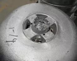 ?。?)嗆火 圖3為鋁輪鑄件大端面嗆火缺陷。