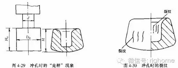 所謂“走樣”是指開式?jīng)_孔時(shí)坯料高度減小,外徑上小下大,而且下端面突出,上端面凹進(jìn)等現(xiàn)象。“走樣”和裂紋等缺陷是與沖孔時(shí)的受力和變形情況有關(guān)的。